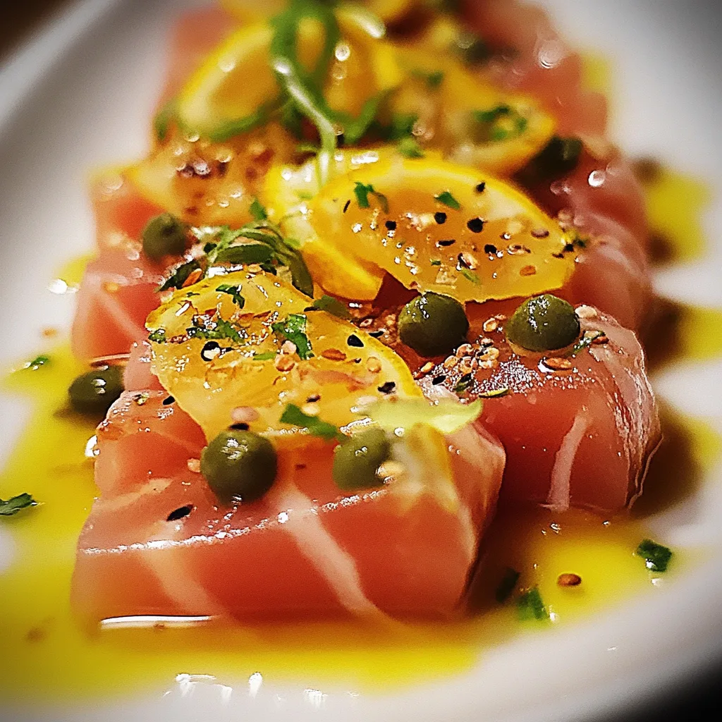 Tuna Crudo with Citrus Caper Vinaigrette offers a delightful way to enjoy fresh seafood while highlighting vibrant flavors. This dish combines fresh tuna and a tangy vinaigrette that enhances its taste without overpowering it. By following simple preparation methods and customizing ingredients to your preference, you can create an impressive meal suitable for any occasion. Enjoy this refreshing dish as an appetizer or light main course that will surely impress your guests!